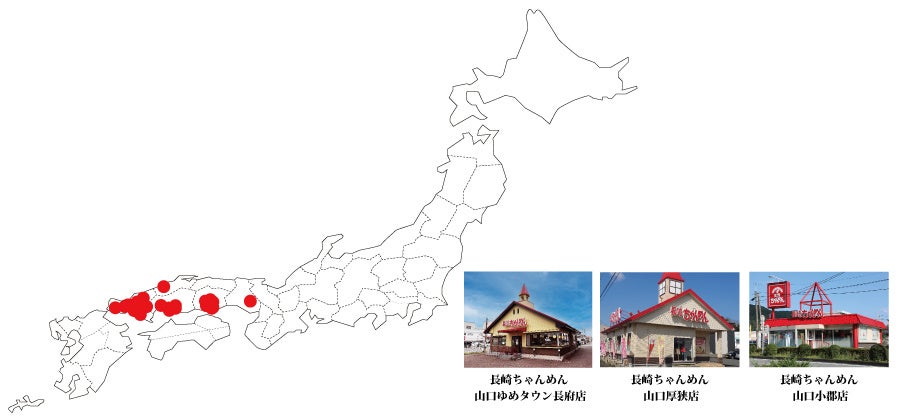 山口県17店舗 広島県5店舗 島根県1店舗 岡山県8店舗 兵庫県1店舗