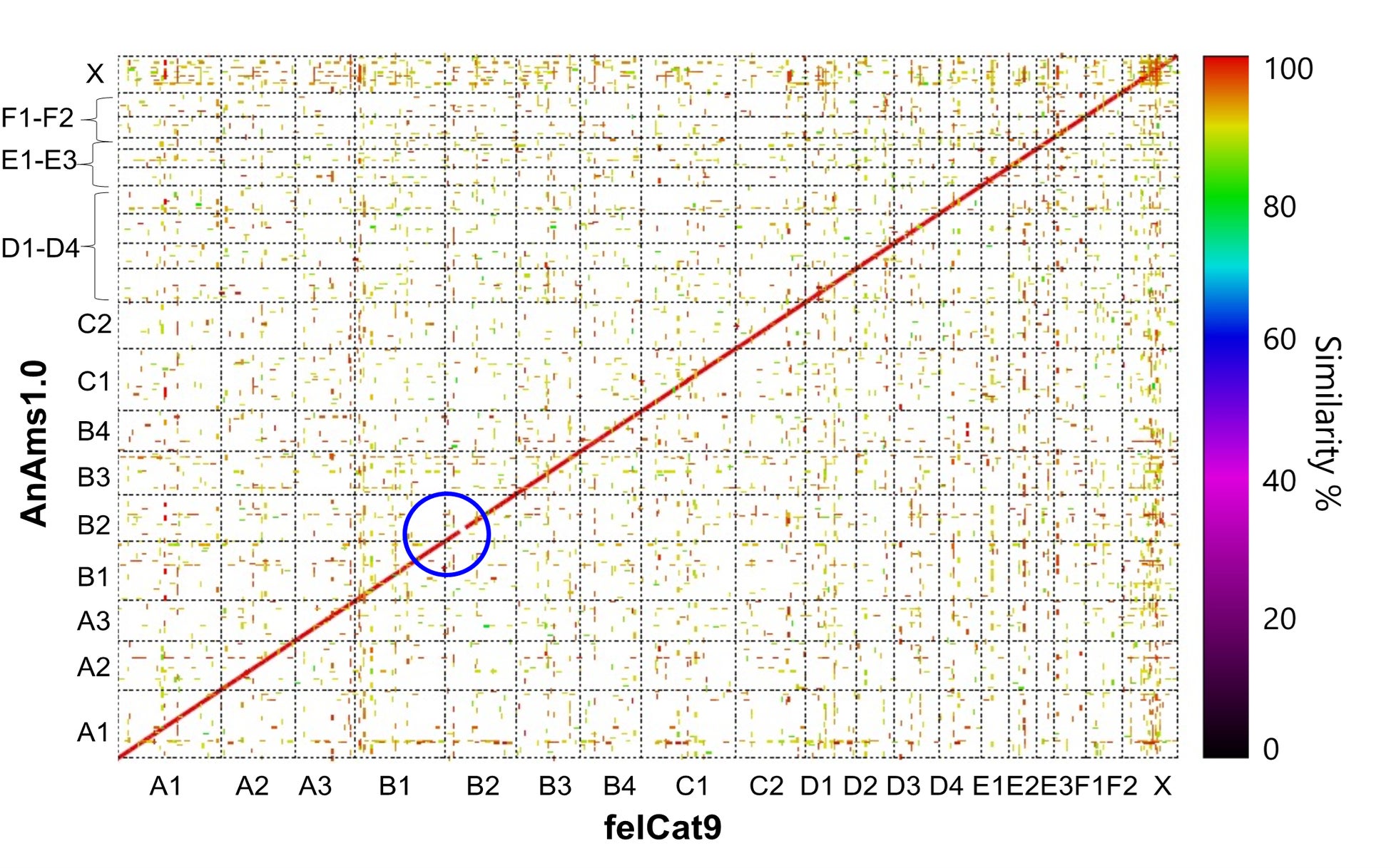 AnAms1.0を6つのネコ科動物の参照配列と比較したところ、参照配列の品質の良さを示す指標である配列のエラー率、再構築された塩基配列長の中央値(N50)、遺伝子の再構成のスコア(BUSCOスコア)が、いずれも既存のネコ科動物の中で最も良い値となっており、最も正確に再構成された参照配列であることがわかりました。解読が難しい嗅覚受容体の遺伝子群においても、AnAms1.0はfelCat9よりも多くの完全な遺伝子が再構成されていることがわかりました。