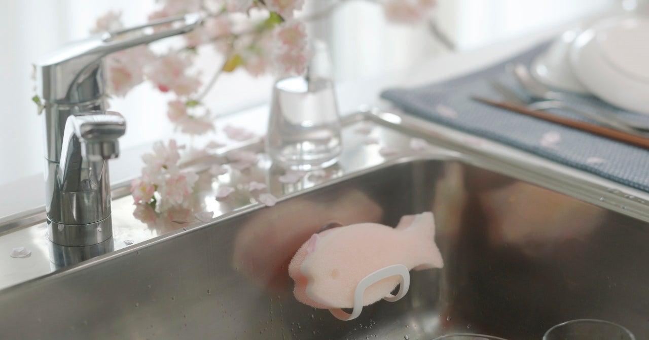 「おさかなスポンジ」はおさかなの形が手になじみ、握りやすいキッチンスポンジ です。長めのサイズでコップの底まで届きます。 ナイロン不織布・ウレタン・脱膜ウレタンの3層構造で、汚れ落ち、泡立ち・泡持ち、水切れにも優れています。 「かわいいだけじゃなく使いやすい」と長くお客様に支持をいただき、発売から25周年 を迎えました。