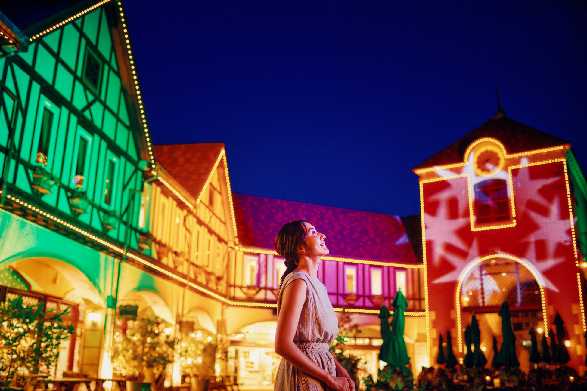 夏シーズンは、営業時間を延長。ロープウェイや標高約400mの展望プラザから、夜景をお楽しみいただけます。展望プラザでは、イルミネーション企画「光の森~Forest of Illuminations~森の大聖堂」2024サマーバージョンもあわせて開催