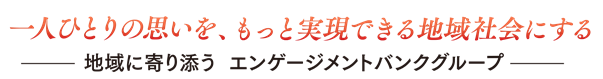 当行グループは、「一人ひとりの思いを、もっと実現できる地域社会にする」をパーパスに掲げ、今後も地域の活性化など社会的価値の提供を通じて、地域に寄り添うエンゲージメントバンクグループを目指してまいります。