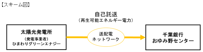 本発電所は、発電出力1,200kWの太陽光発電所で、年間発電量は約1,350MWh※2を想定しており、発電した再生可能エネルギー由来の電力は全て、当行のシステム拠点であるおゆみ野センターに供給されます。なお、本発電所の年間発電量は、当行グループの年間使用電力量の約4.1%に相当します。また、太陽光発電設備の設置・運用ならびに自己託送に必要な需給管理については、東京電力グループの日本ファシリティ・ソリューション株式会社が提供するサービスを活用します。