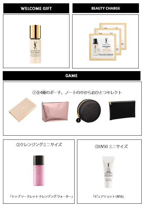 ■GAME:制限時間内にアイテムを集め、クリアした点数に応じて、YSLオリジナルポーチやノート、人気製品のミニサイズなどの特別ギフトが。