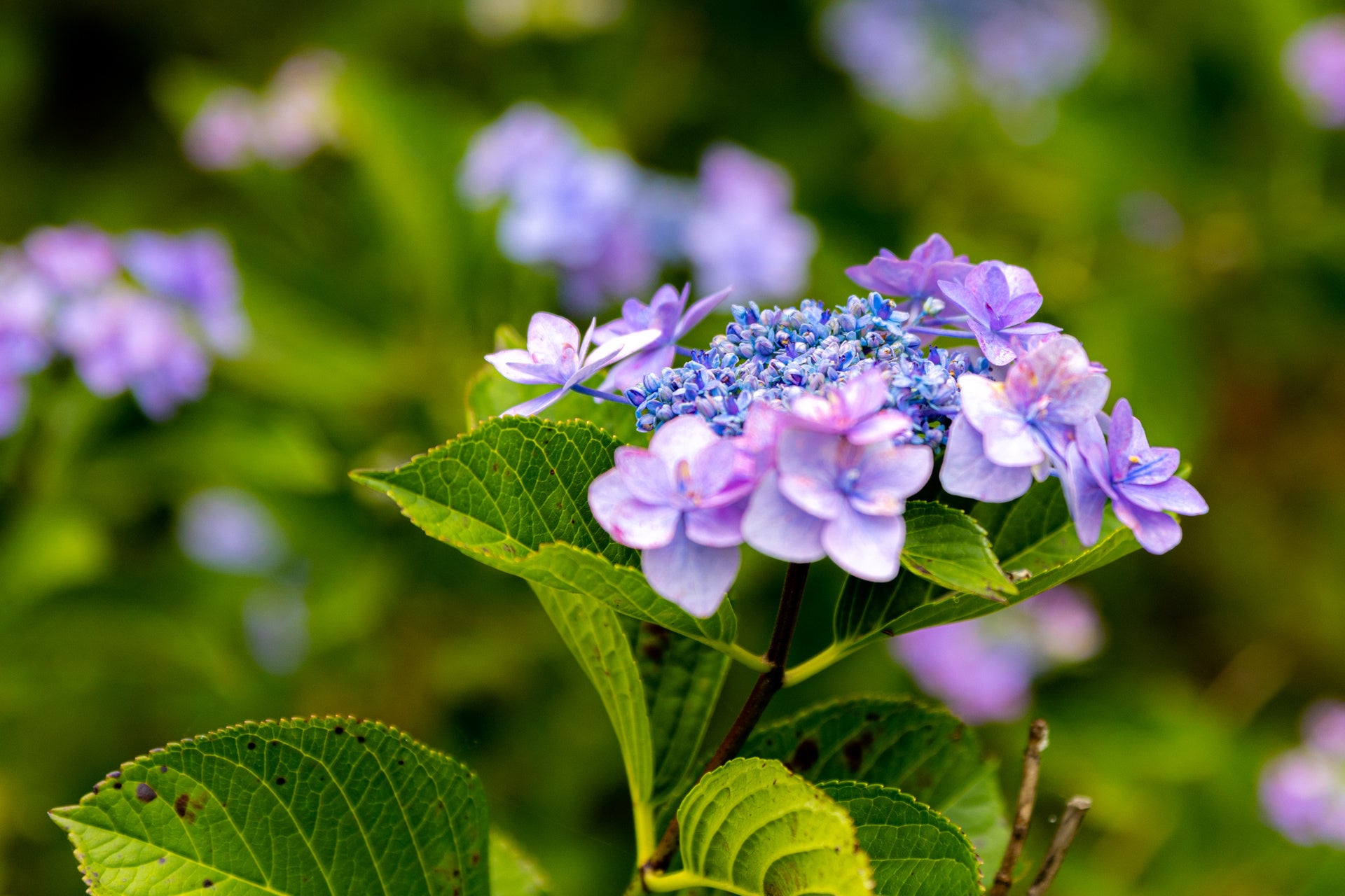 あじさいを代表するてまり咲きから豪華な八重咲きの品種、ガクアジサイをはじめとした野趣あふれる系統まで、そのバリエーションの豊かさにきっと驚くはず。