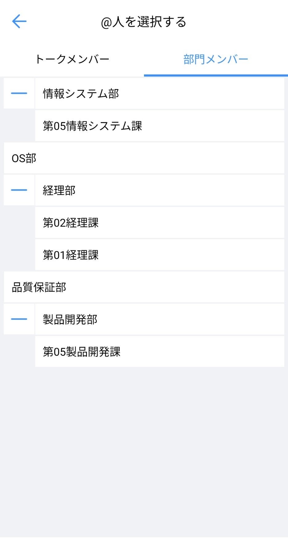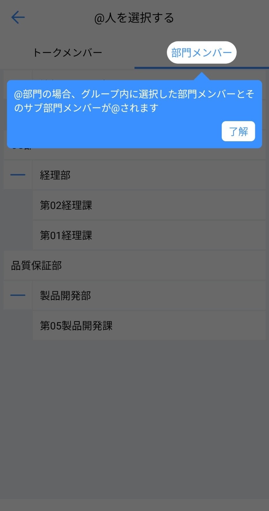 WowTalkの利便性向上を目的として、グループトークのメンション機能の宛先に、部門を選択できる機能を追加しました。
