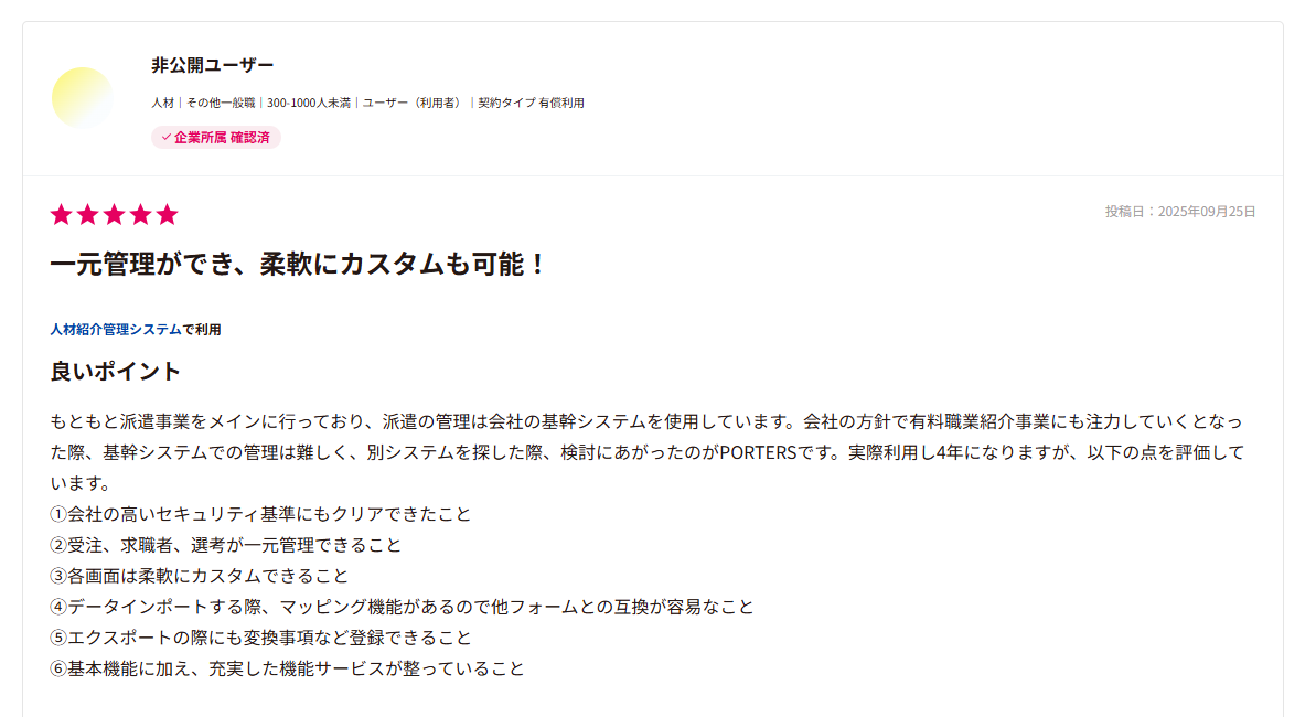 本受賞は日々のフィードバックをもとにご評価いただいた結果であり、日頃よりPORTERSをご利用いただき、レビューをお寄せいただきました皆様に、心より感謝申し上げます。