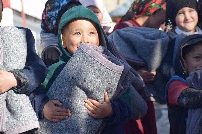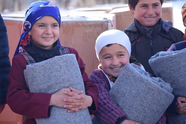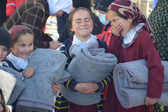 オンワードの回収衣料品から生産したリサイクル毛布4,000枚をタジキスタンの貧困世帯へ寄贈