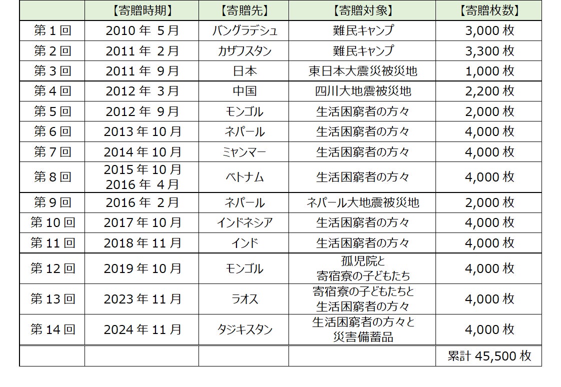 ※第1回~第2回は「UNHCR」を通じて寄贈。第3回以降から「日本赤十字社」を通じて寄贈。