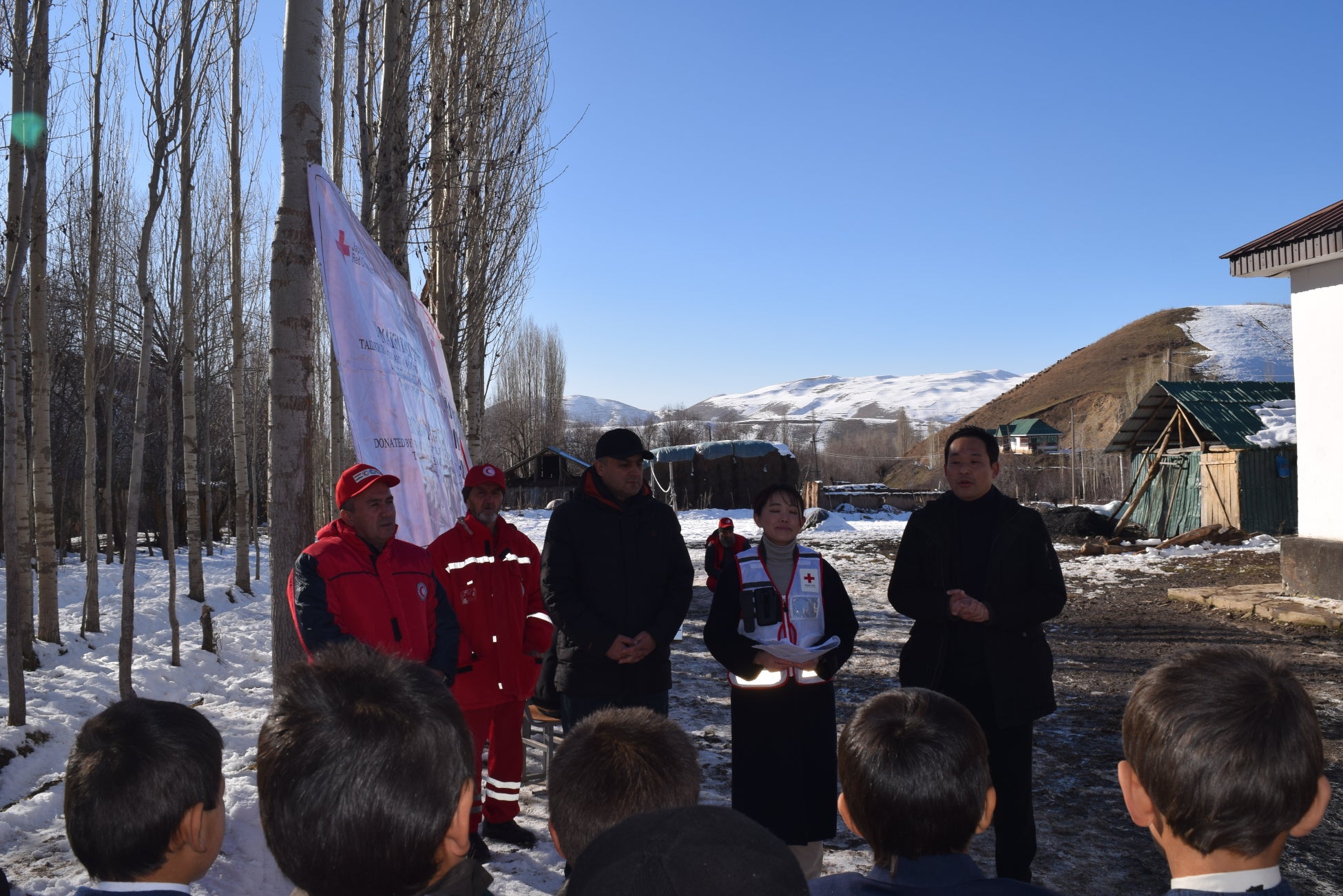 株式会社オンワードホールディングス(本社:東京都中央区 代表取締役社長:保元 道宣)は、当社の回収衣料品から生産したリサイクル毛布4,000枚を、日本赤十字社の協力のもと、タジキスタン赤新月社へ寄贈しました。11月27日(水)には、タジキスタン・ラシュト地区にて当社社員が現地の方々に直接リサイクル毛布を手渡す寄贈式を行いました。