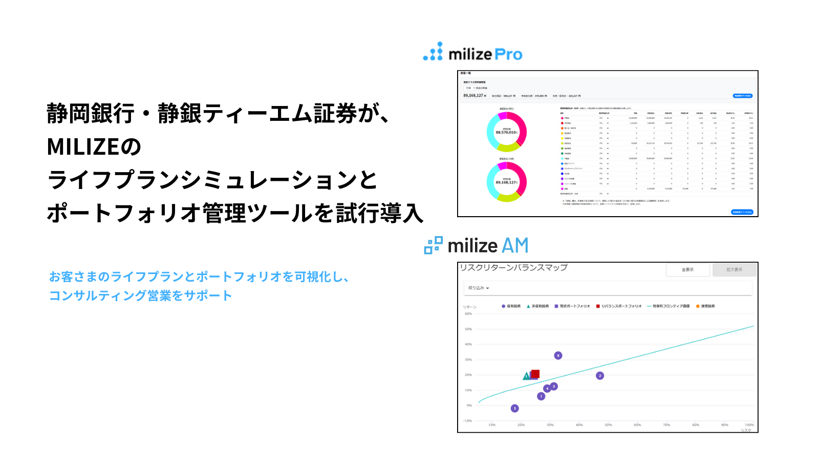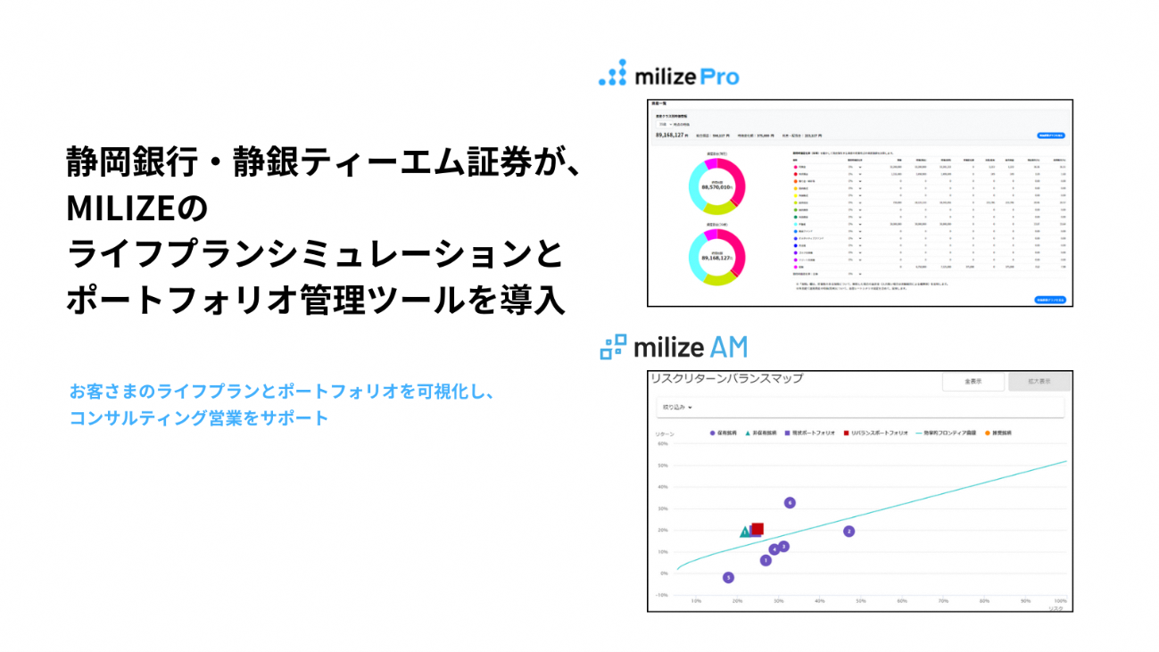 静岡銀行・静銀ティーエム証券が、MILIZEのライフプランシミュレーションとポートフォリオ管理ツールを試行導入