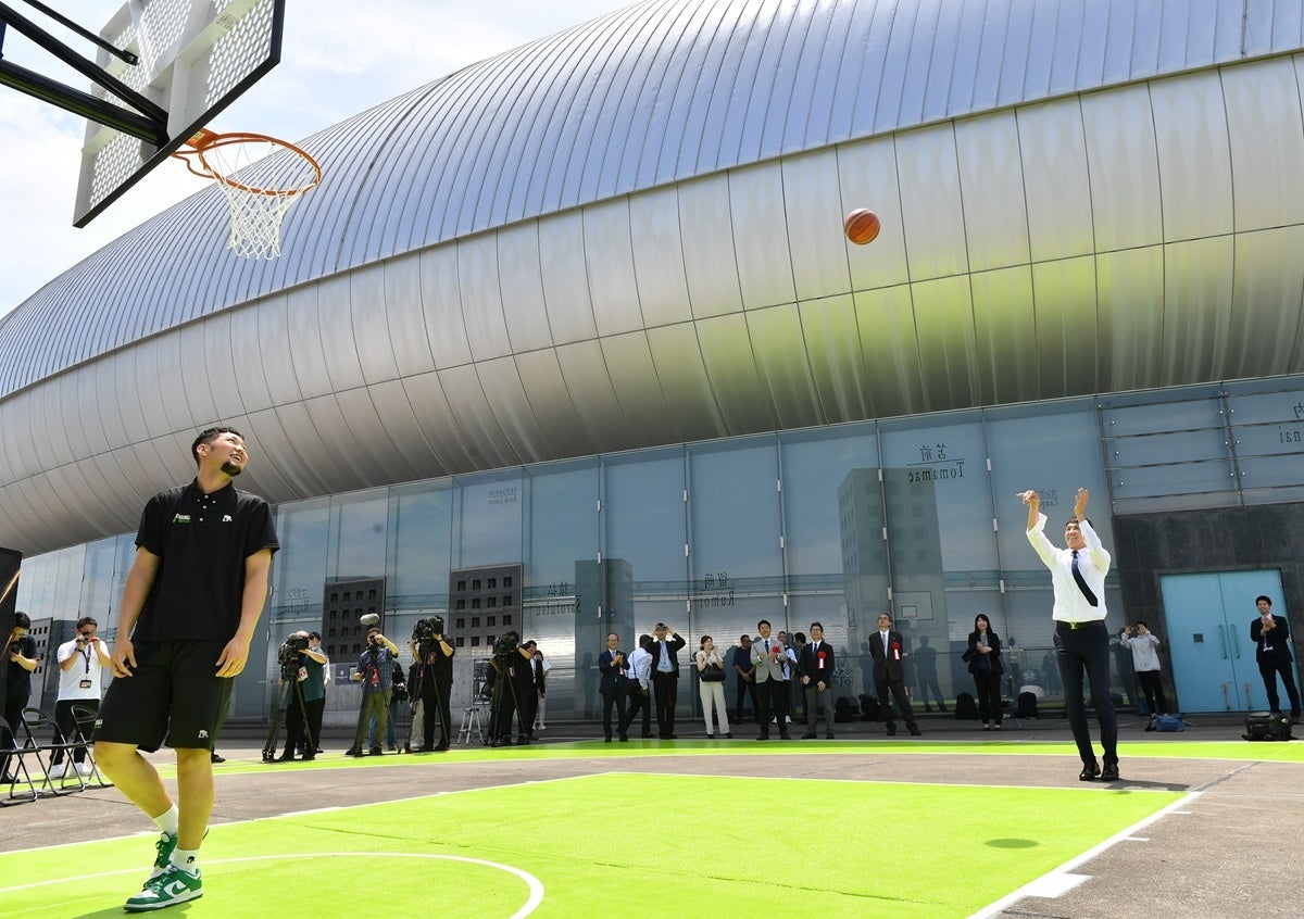 本プロジェクトの第1回目となるバスケットゴール、3x3コートの設置(名称:LEVANGA COURT)は、大和ハウス プレミストドームの敷地内(屋外)となり、6月26日、竣工式を執り行いましたので当日の様子をご紹介いたします。