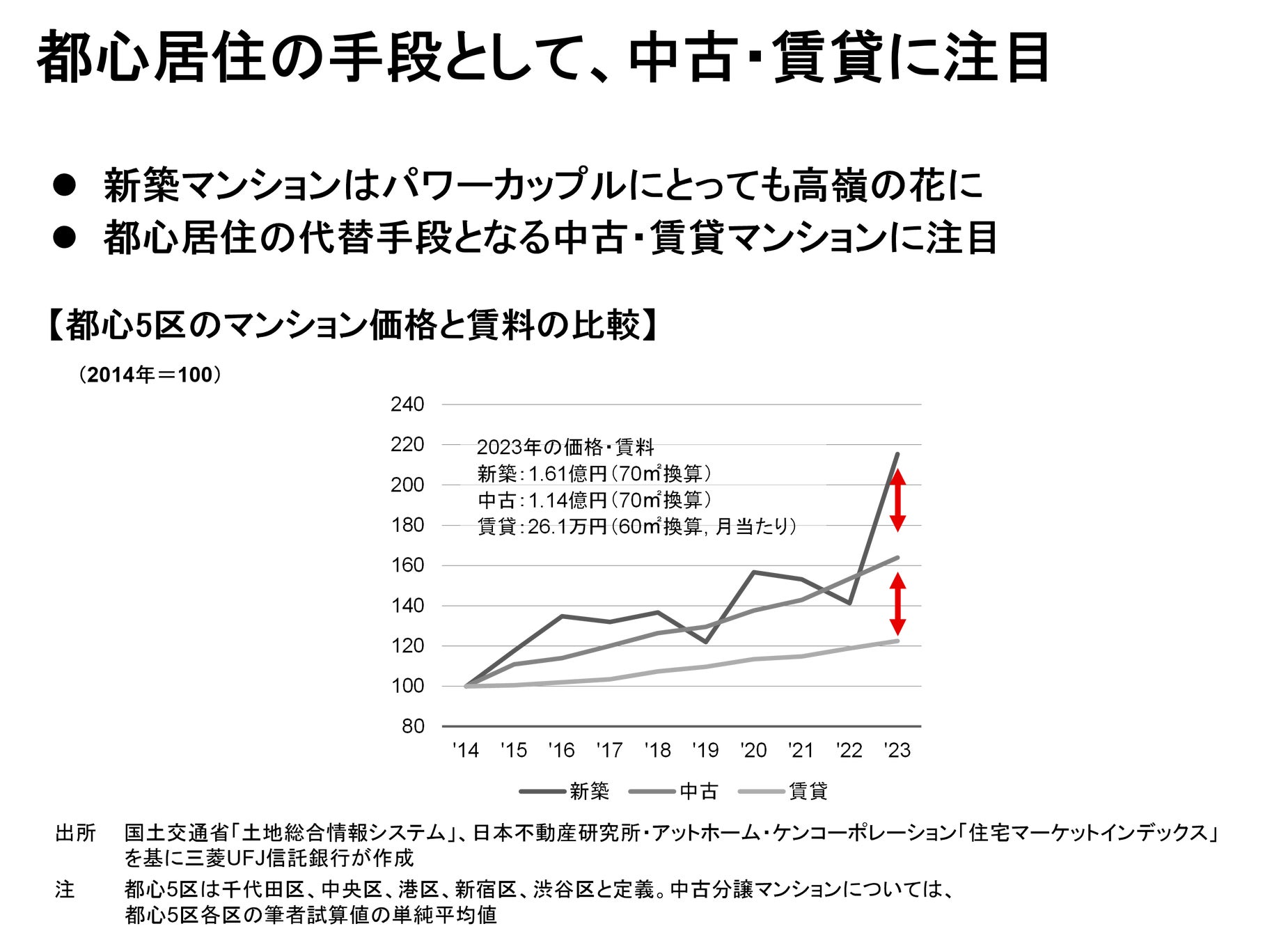 三菱UFJ信託銀行株式会社(東京都千代田区、取締役社長:長島 巌)は、この度不動産マーケットリサーチレポートVol.252「パワーカップルの都心居住~新築マンション以外の選択肢~」を発行しました。