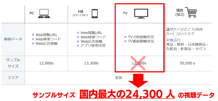 ◆データ拡張①: i-SSPテレビ視聴パネルが、これまでの全国12,000人から、全国24,000人以上へと倍増します。
