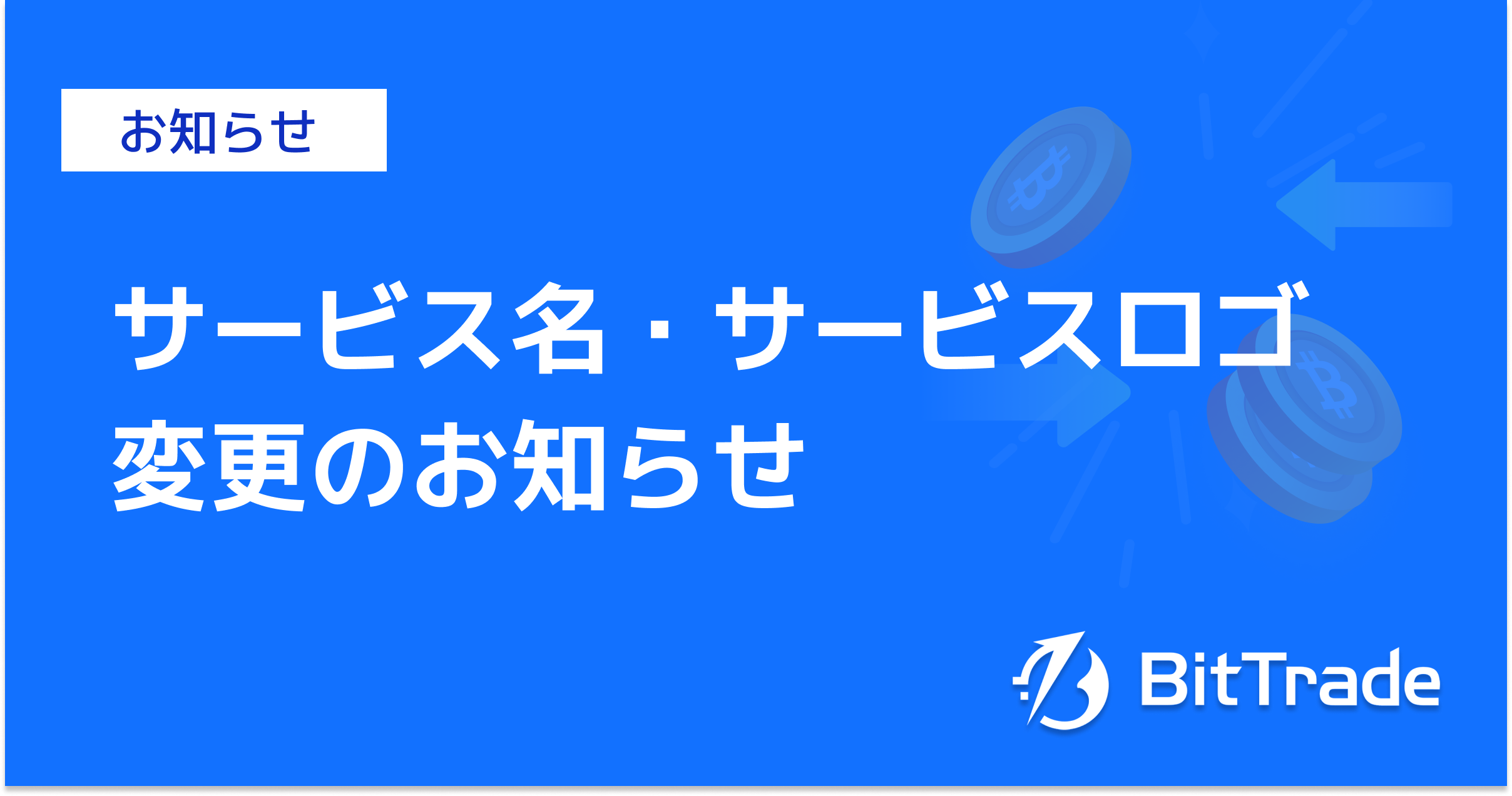 当社は、2023年2月15日15時(予定)よりサービス名とサービスロゴを「BitTrade(ビットトレード)」へ変更することをお知らせいたします。