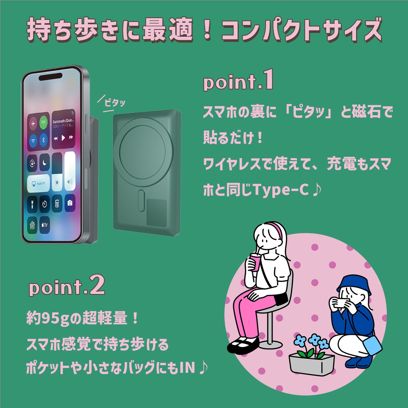 スマホの外カメラ映像を手元のモニターで確認できるから、表情や構図をチェックしながら、理想の1枚をしっかり残せます。軽量で持ち運びやすく、Type-C充電にも対応。ちょっと離れた位置からでも、自然に撮影できる便利な機能も搭載しています。旅行、自撮り、カフェタイム、推し活など、毎日の“盛れ瞬間”をもっとキレイに、もっと自由に。