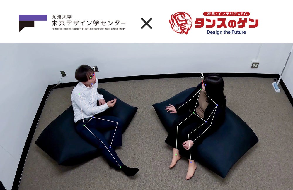 そこで、タンスのゲンは九州大学大学院芸術工学研究院・九州大学 未来デザイン学センター(兼務)の西村 英伍 助教とタッグを組み、動画解析技術を活用し人々のリラックス時の行動観察をすることで、より現代の生活環境に適合した新たな居住アイテムの開発を推進いたします。