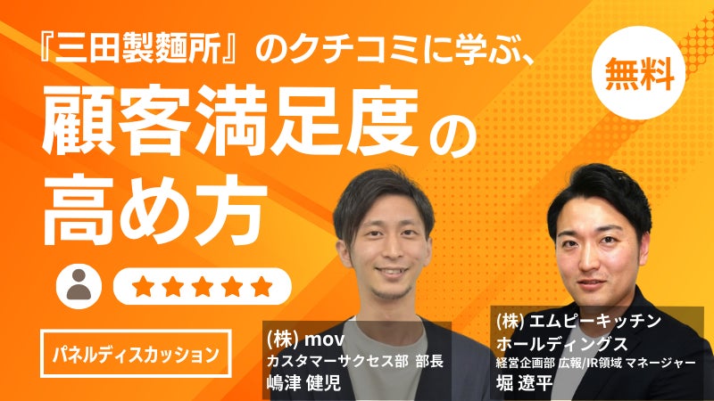 『つけ麺専門店 三田製麺所』や『薄皮餃子専門 渋谷餃子』などを運営する株式会社エムピーキッチンホールディングス(本社:東京都渋谷区 代表取締役会長:村上竹彦)は、業界最大級のインバウンドビジネスメディア『訪日ラボ』および、店舗向け集客一元化プラットフォーム 『口コミコム』を運営する株式会社mov(本社:東京都渋谷区 代表取締役:渡邊 誠)との共同セミナーを、11月21日(木)に幕張メッセで開催された『飲食業界イノベーションWeek』において実施いたしました。 同セミナーにおいては、口コミコムを活用した三田製麺所における口コミ分析を通じた顧客満足度の高め方を、パネルディスカッション形式で紹介しております。