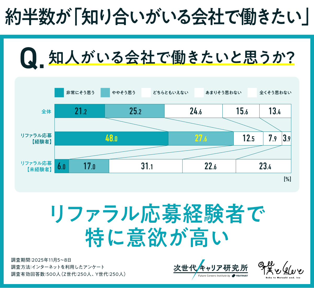 2. 全体の約半数が「知人のいる会社で働きたい」、リファラル応募経験者では約8割