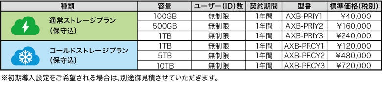 ■価格表(サポート費込み、ユーザー無制限で2種類の基本プランから容量を選択できます。)