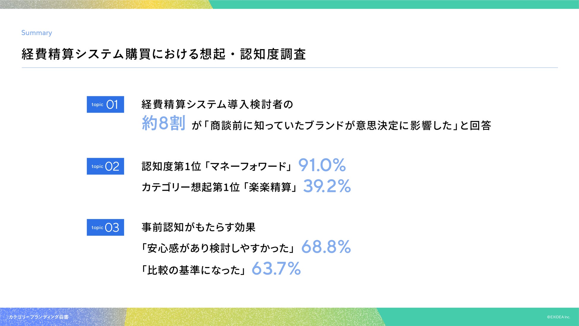 02|認知度第1位は「マネーフォワード」(91.0%)、カテゴリー想起第1位は「楽楽精算」(39.2%)