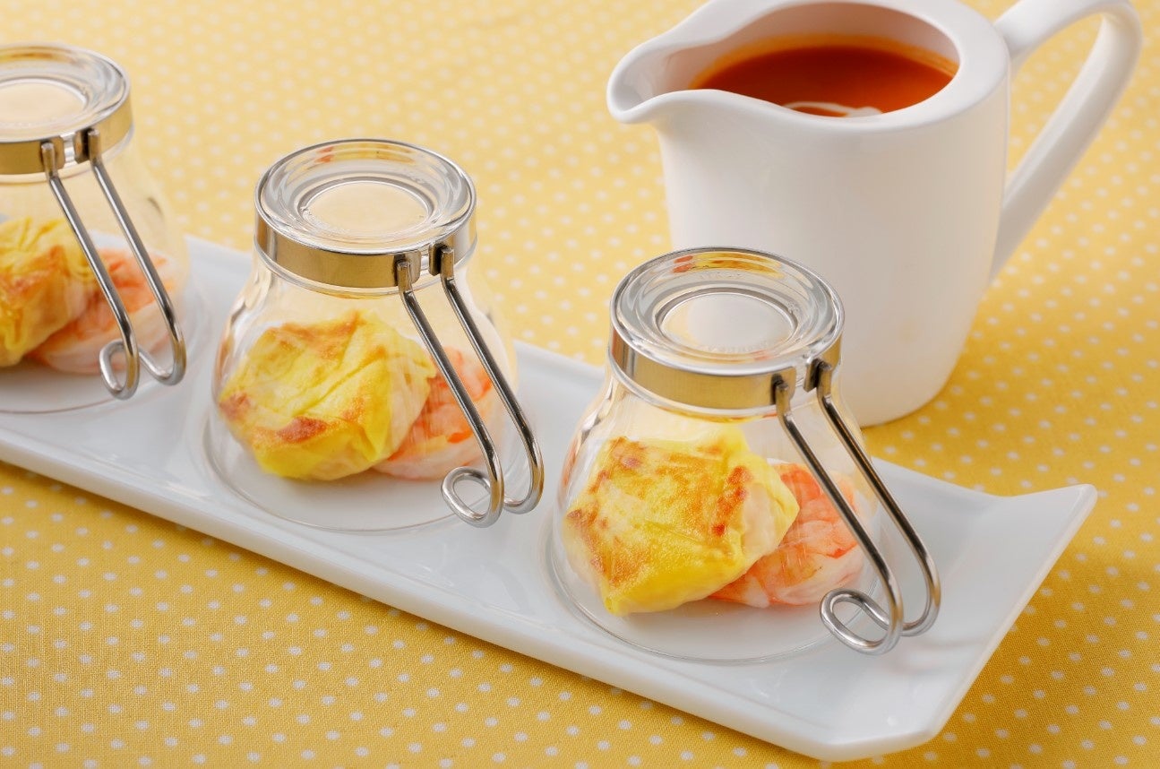 海老のうまみがしみ込んだ具だくさんの「赤海老のパエリア アイオリソース添え」や、一口サイズでおしゃべりしながら楽しみたい「甘海老のアミューズ」「桜海老・抹茶の柚子風味トースト」など全6品をご用意いたします。