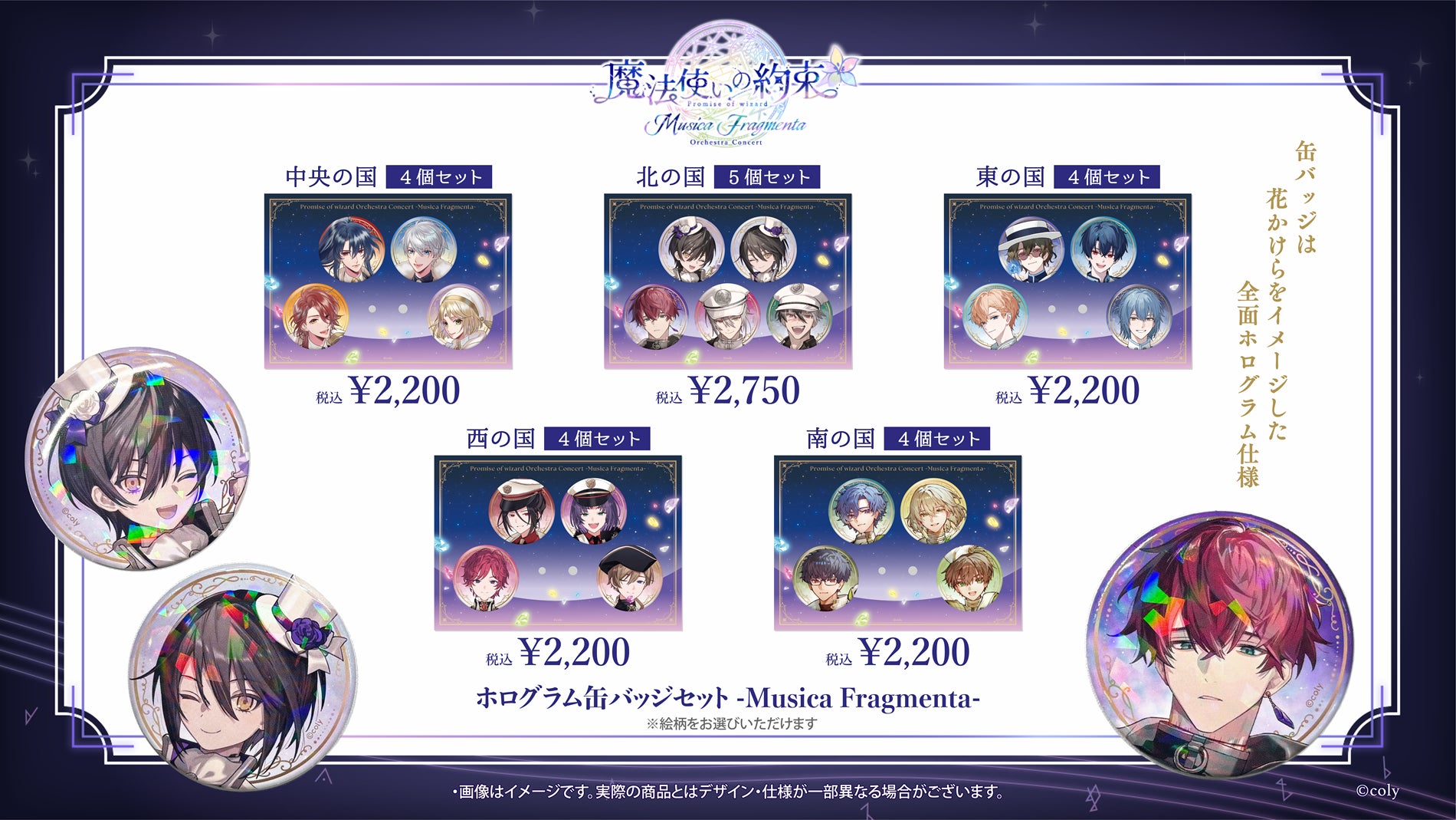 株式会社coly(東京都港区、代表取締役社長:中島杏奈)は、2025年12月27日(土)に市川市文化会館にて開催する「『魔法使いの約束』オーケストラコンサート- Musica Fragmenta -」について、公演グッズのデザインを公開いたしました。6名のイラストレーターによる描き起こしイラストを使用したアクリルスタンドやホログラム缶バッジセットなど、「まほやく」ファン必見のラインナップとなっております。
