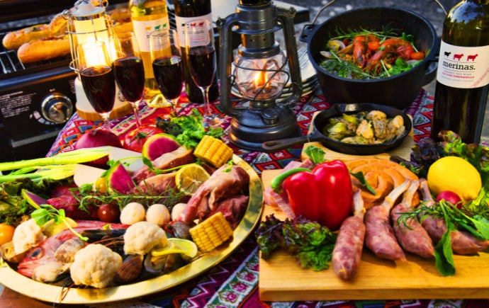 グリルで仕上げる料理、ダッチオーブンで仕上げる料理などを楽しめる体験型の料理を充実させています。