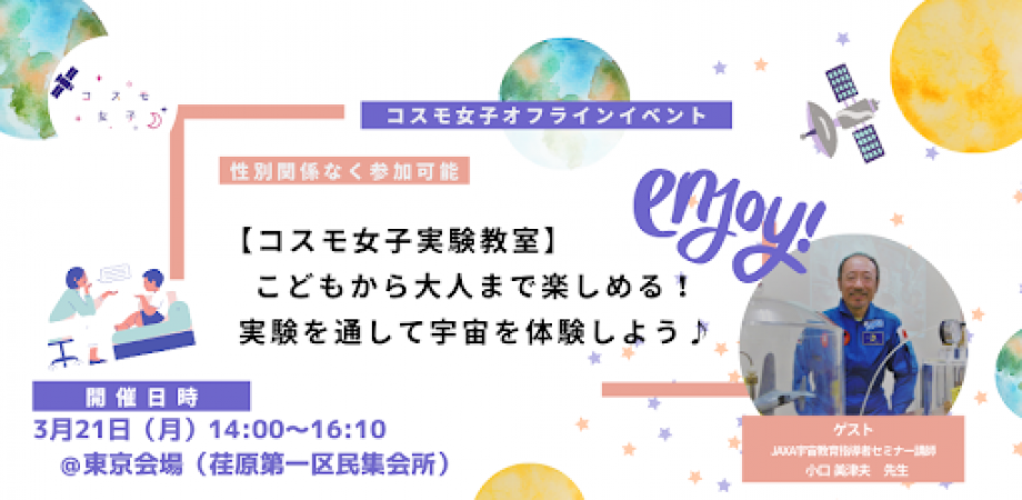 【コスモ女子実験教室】3月21日開催 こどもから大人まで宇宙を楽しく体験しよう!