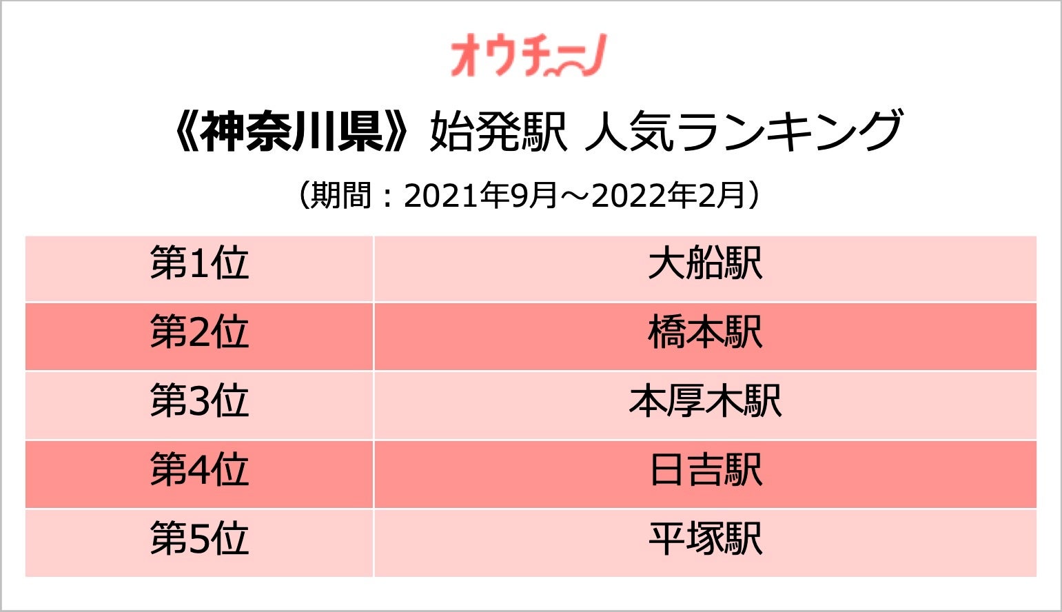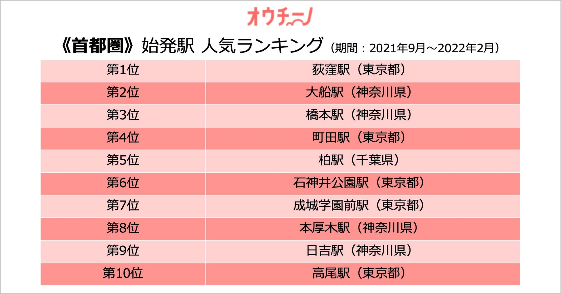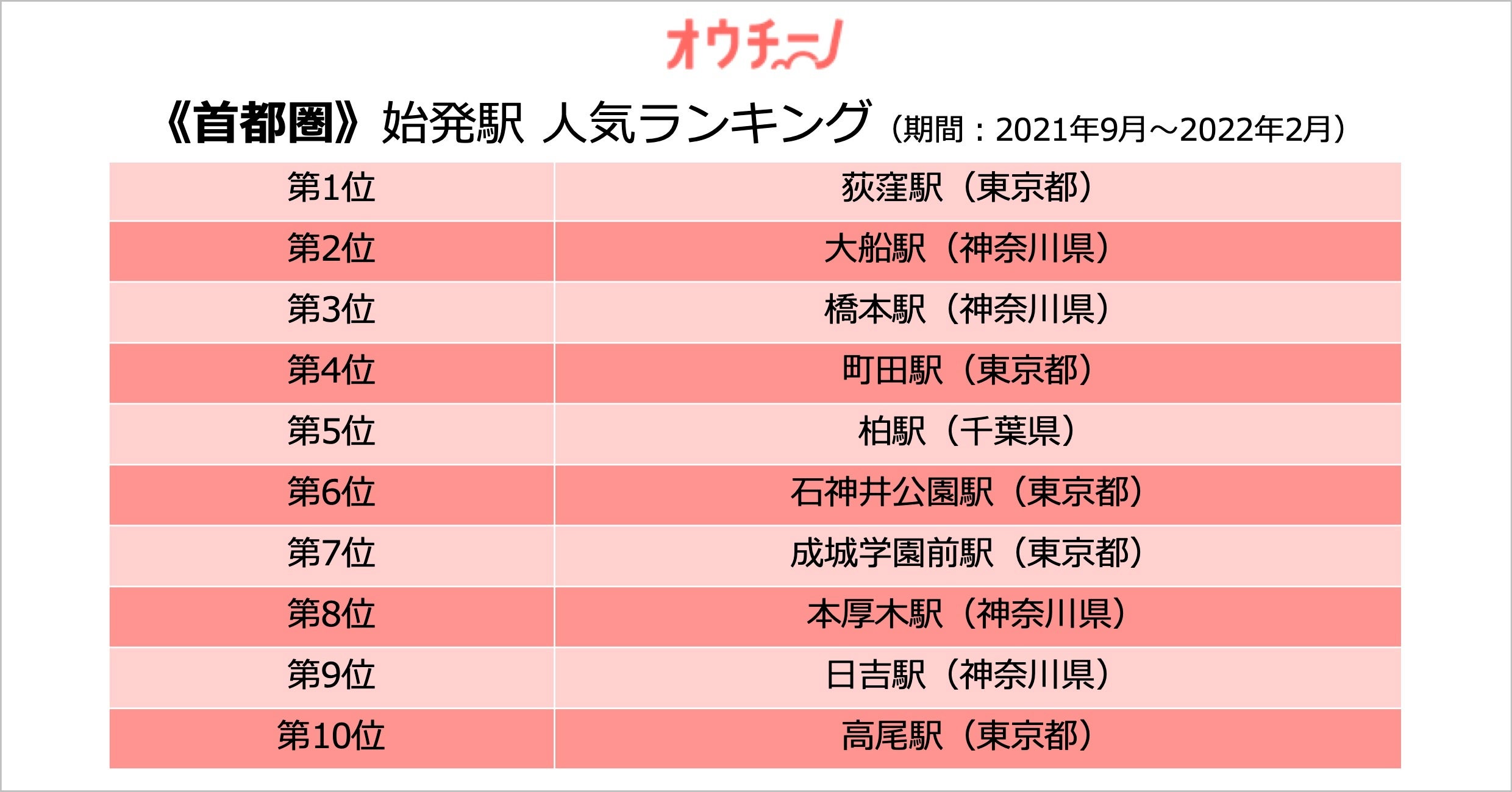 【2021年9月-2022年2月 オウチーノ 首都圏人気駅ランキング(始発駅編)】トップ3は「荻窪駅」「大船駅」「橋本駅」