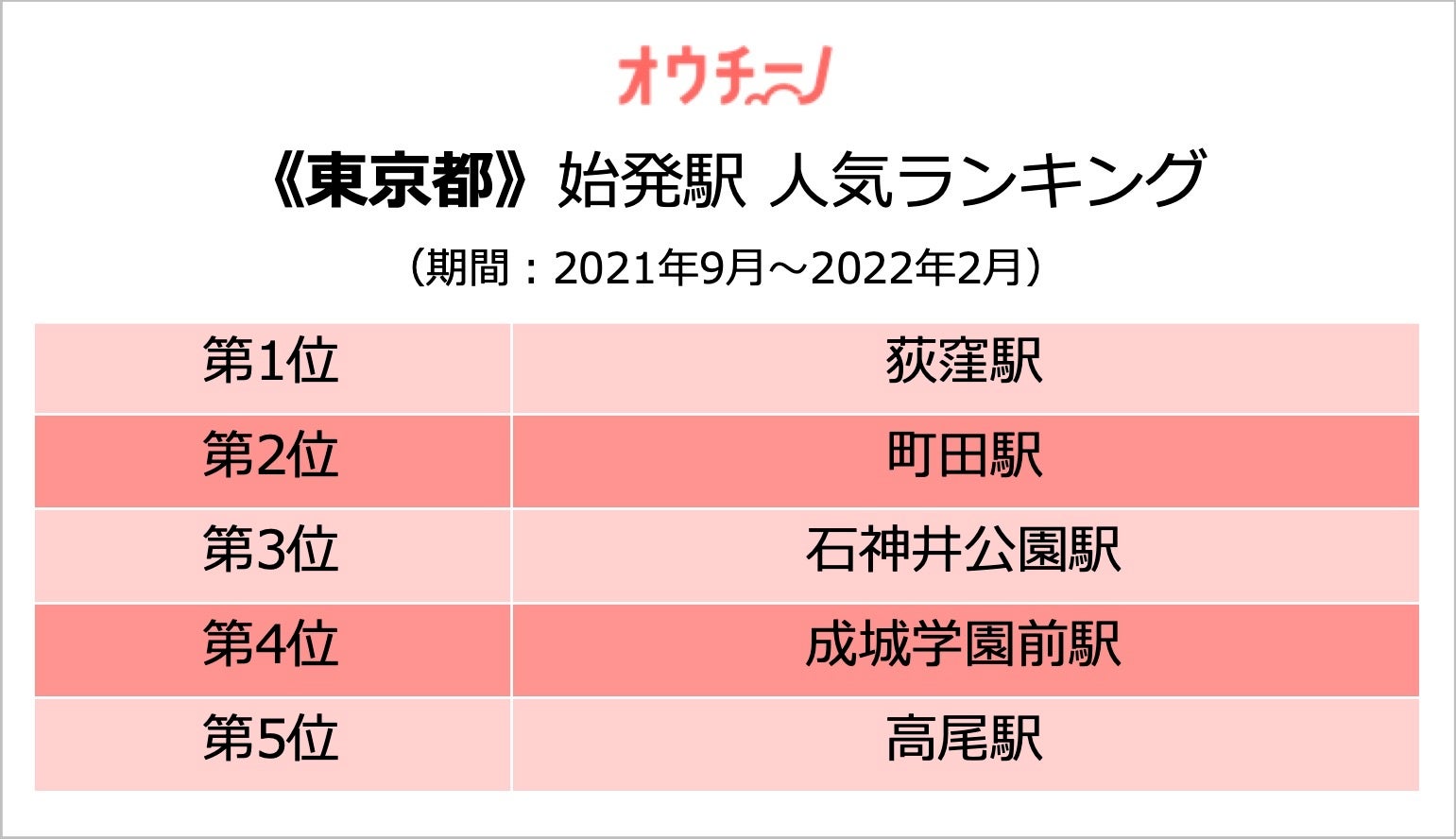くふうグループにおいて、住宅・不動産専門サイト「オウチーノ(https://o-uccino.com/ )」を運営する株式会社オウチーノは、年度の変わり目は進学や就職・転勤などで転居を伴う新生活を迎える方が多くなることから、利便性の高い「始発駅」に注目し、2021年9月〜2022年2月の期間における「オウチーノ」サイトの「始発駅」ページへのアクセス数を集計しました。今回は、首都圏(東京都、神奈川県、千葉県、埼玉県)における始発駅ランキングを発表します。