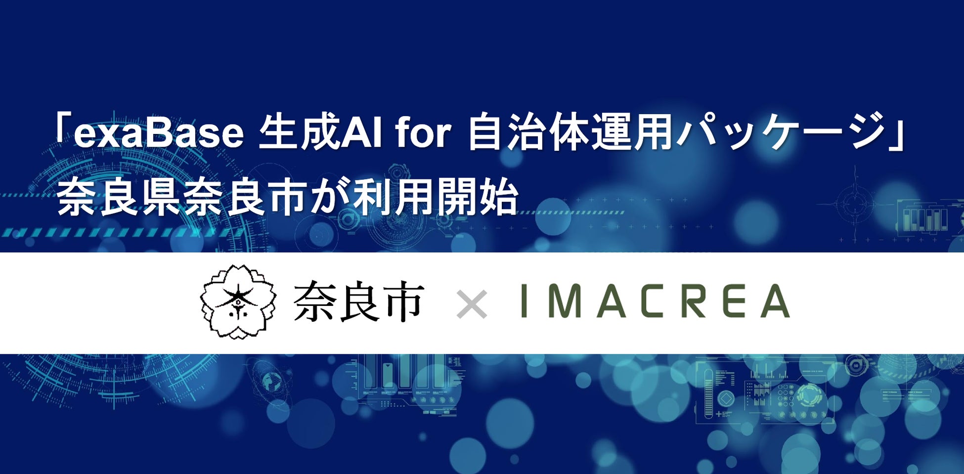 株式会社イマクリエ(本社:東京都港区、代表取締役:鈴⽊信吾、以下、当社)は、奈良県奈良市において「exaBase 生成AI for 自治体運用パッケージ」(以下、本パッケージ)の提供を開始し、運用を正式に開始しました。