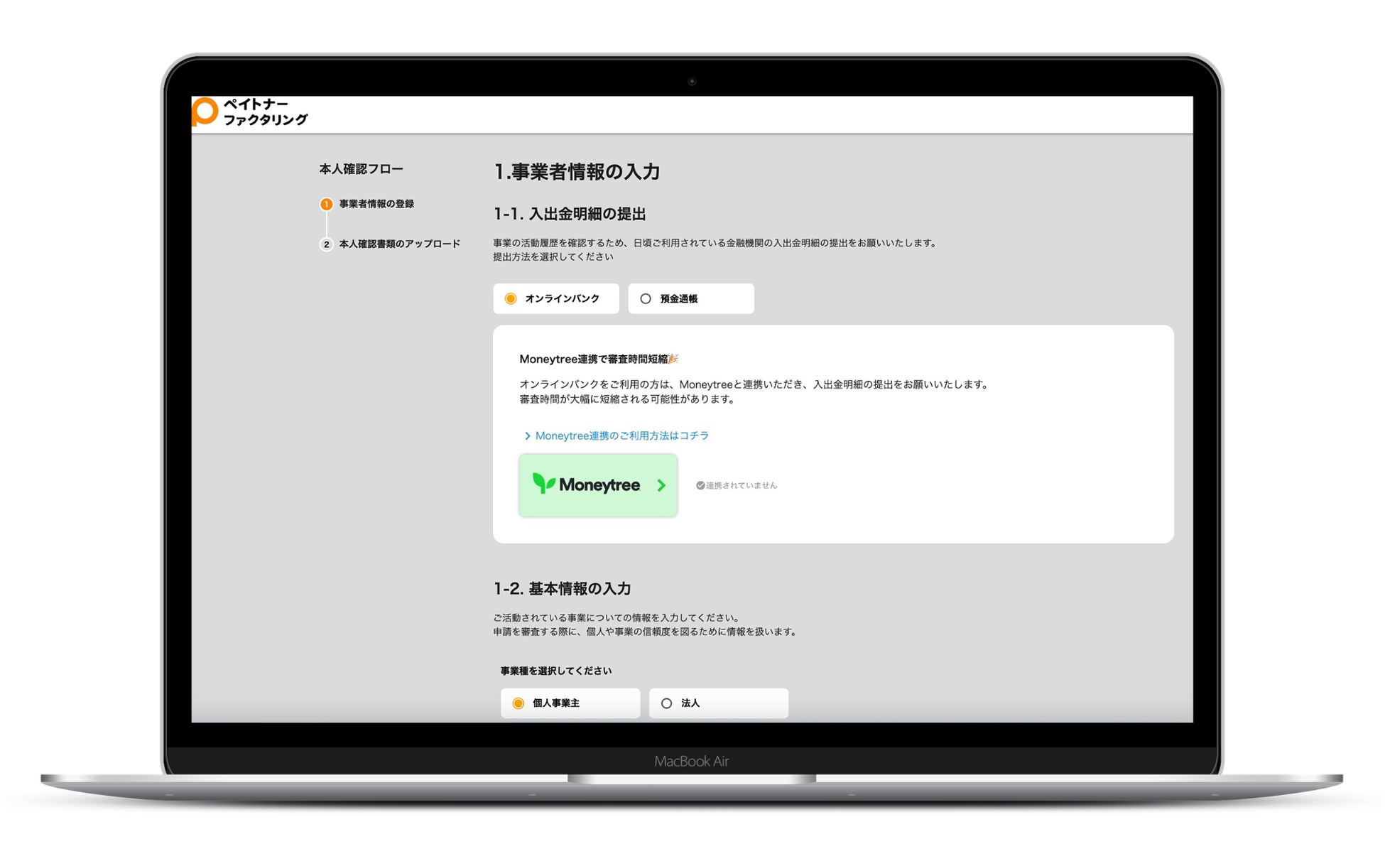 「ペイトナー ファクタリング」の審査の高度化と、申請時の負担軽減を目的に「Moneytree LINK」との連携を行いました。
