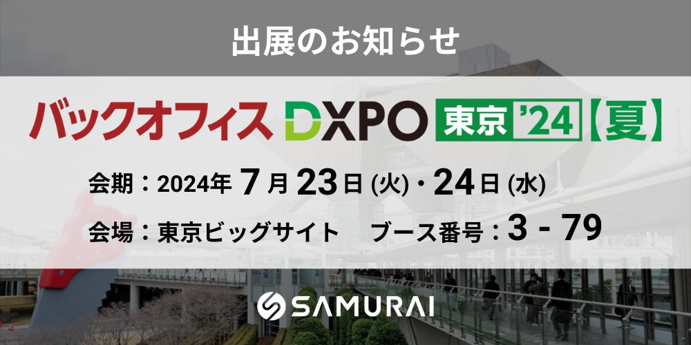 株式会社SAMURAI、業務効率化・DX推進のための展示会『バックオフィスDXPO東京'24 夏』に出展