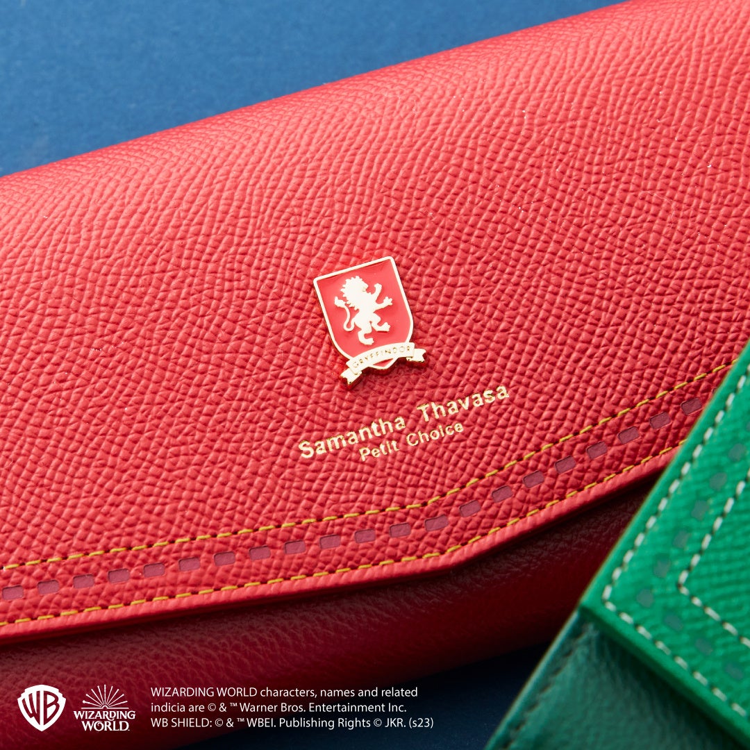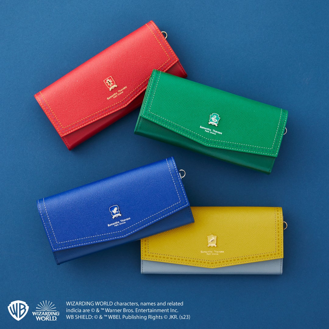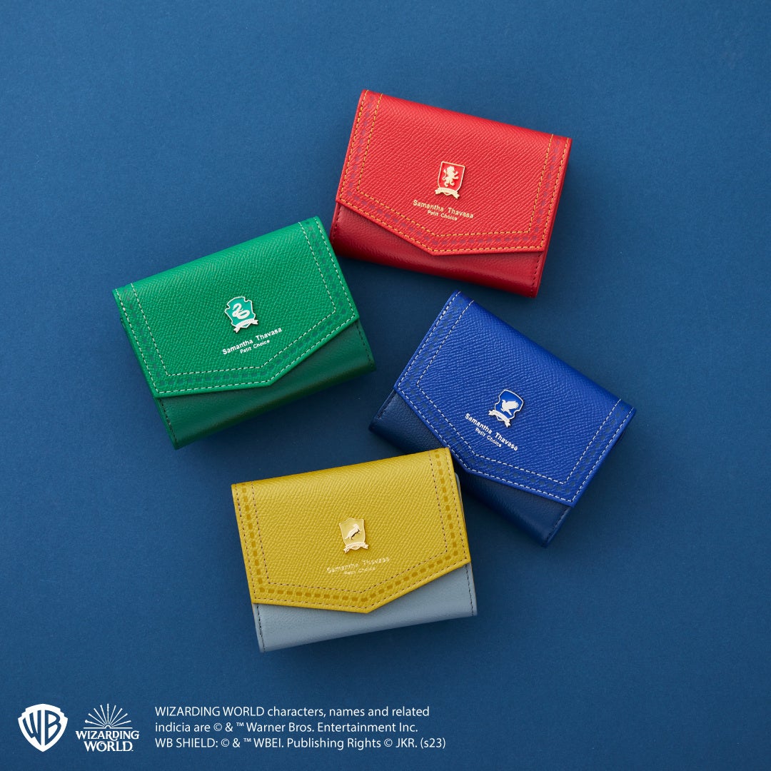 コンパクトな折財布と収納力抜群な長財布はグリフィンドール、スリザリン、レイブンクロー、ハッフルパフのそれぞれの寮をイメージしたカラーで展開。寮章の金具モチーフが更に「ハリー・ポッター」の世界観を引き立たせるデザインに。ワンポイントにもなる鮮やかな配色のお財布で、バッグの中まで華やかに。