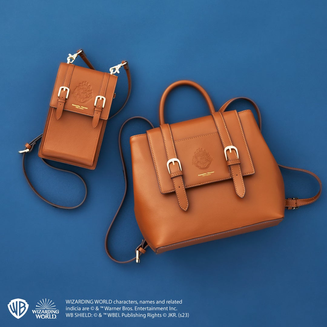 ブラウン調のカラーにホグワーツの校章を型押ししたデザインが印象的。