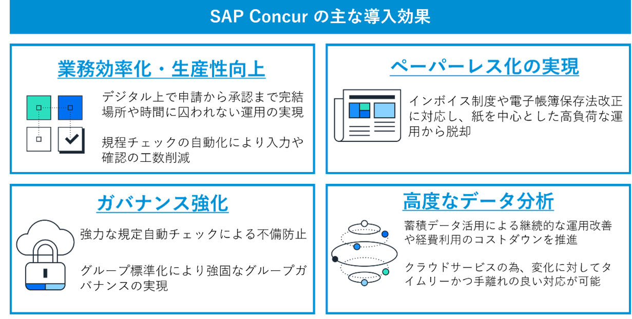 SAP Concurは、出張、経費、請求書管理を統合したソリューションを提供する世界有数のブランドであり、これらのプロセスの簡素化と自動化を追求しています。高い評価を得ているSAP Concurのモバイルアプリは、社員の出張をサポートし、経費を自動で入力し、請求書の承認を自動化します。AIを使いリアルタイムのデータを統合、分析することで、効率的な支出管理を行うことが可能です。SAP Concurのソリューションは、手間の掛かる作業をなくし、お客様の業務効率化に貢献、最高の状態でビジネスを進めることができるようサポートします。詳細はconcur.comまたはSAP Concur ブログをご覧ください。