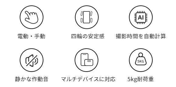 5. 耐荷重量は5kg、スマホ、アクションカメラ、一眼レフカメラやミラーレスカメラなどにも使えます。