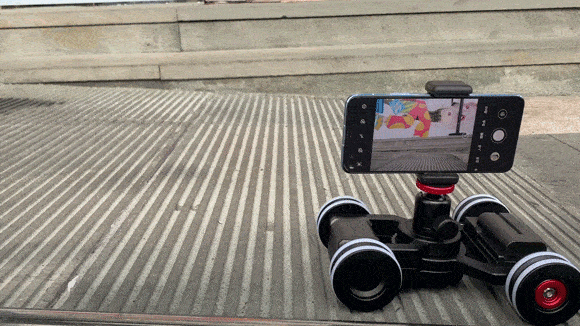走行距離や時間、方向を設定するだけ、ドリーがサクサク動いてくれます。約10m離れた場所からでも快適に操作可能。また、アプリで最大100mの走行距離を設定可能で、道路での撮影に最適!