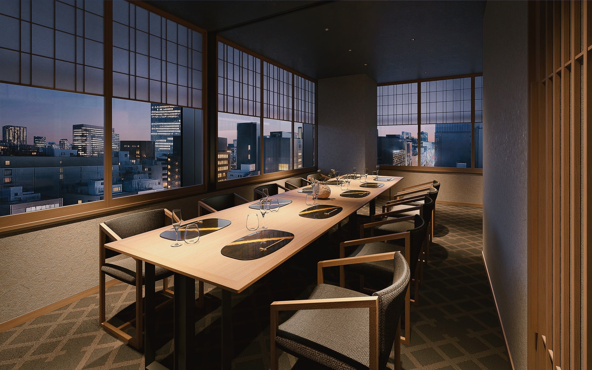 12階のレストランは、すべてのお席を個室でご用意しております。夜景を望むお席や、掘り炬燵のお席など、趣の異なる空間でゆったりとお過ごしください。