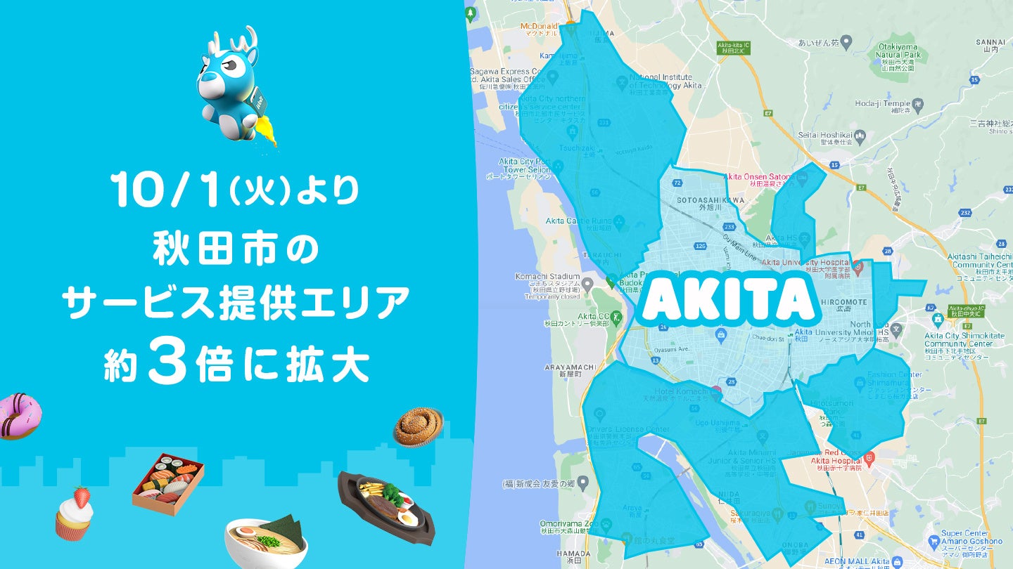 おもてなしデリバリー Wolt、2024年10月1日(火)より秋田市でサービス提供エリアが約3倍に拡大!