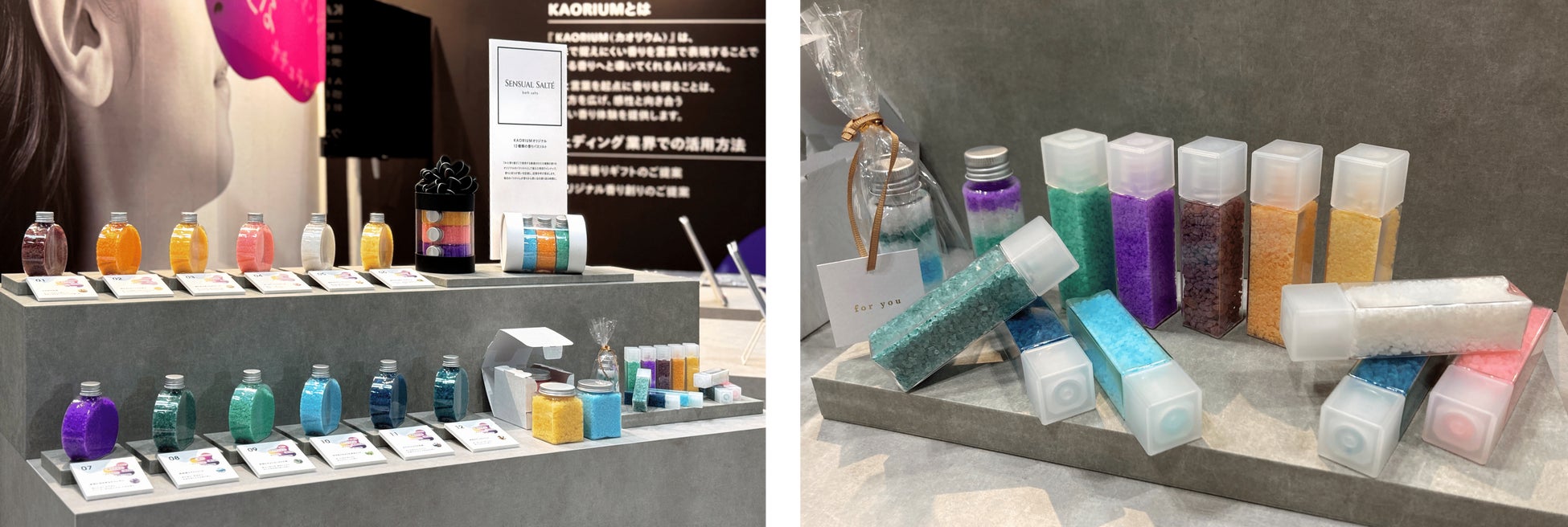 セントマティックは本イベントにて、香りを言語化するAI「KAORIUM」の診断体験を通じて、厳選された12種類の香りの中から自分に合ったバスソルトを選べる体験型ギフトプランを提案しました。本プランでは、新郎新婦が結婚式のコンセプトやゲストへの感謝の気持ちを香りで表現し、特別な日をより鮮やかな記憶として残すことができます。さらに、KAORIUMの診断によって選ばれたバスソルトは、組み合わせやラベルを自由にカスタマイズできるため、自分だけのオリジナルギフトとして仕上げることが可能です。こうした特別な体験を香りとして形に残すサービスは、多くの来場者から注目を集めました。