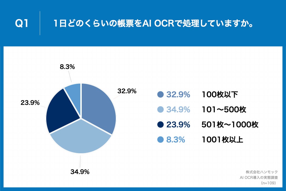- AI OCRで処理する1日の帳票数、67.1%が「100枚以上」と回答