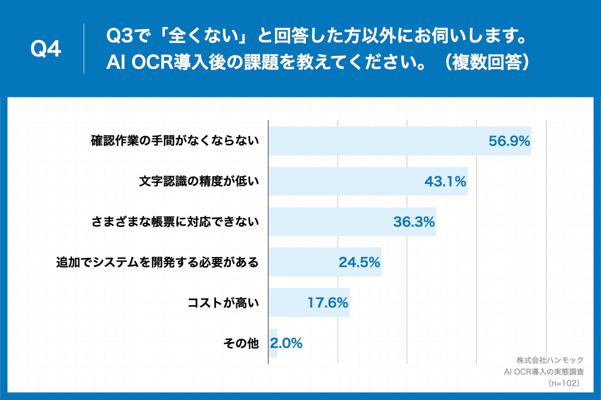 【AI OCR導入の実態調査】導入後、約8割が課題あり。うち6割は「確認作業の手間がなくならない」と回答
