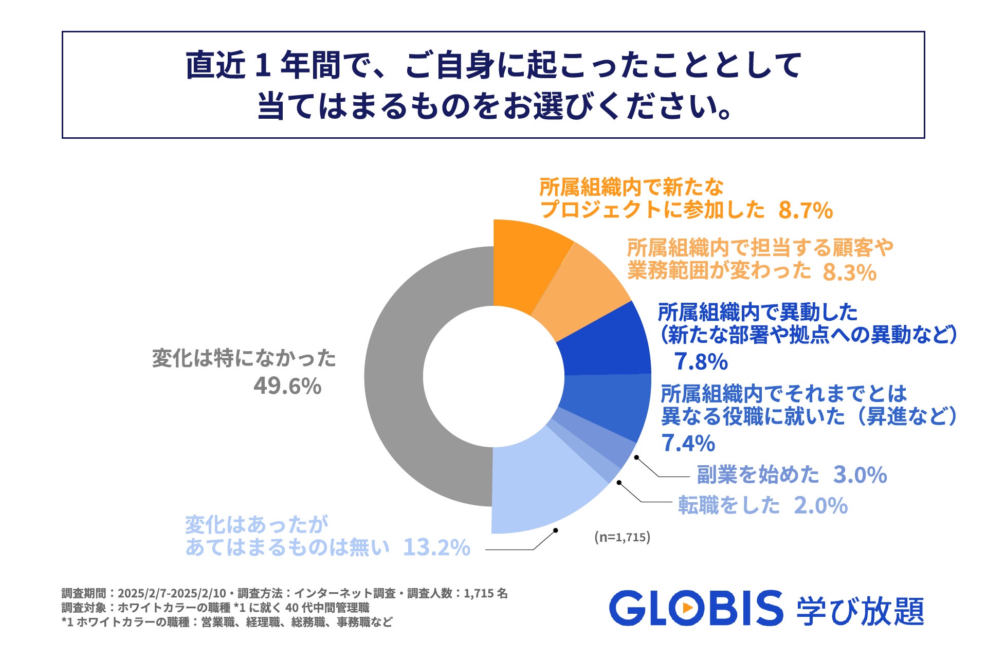40代中間管理職の約5割が、直近1年間に仕事上で何かしらの変化を経験