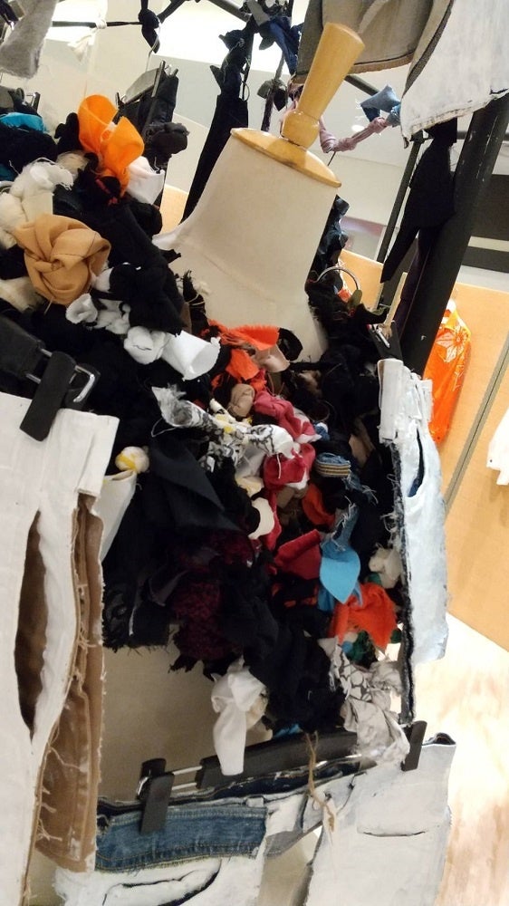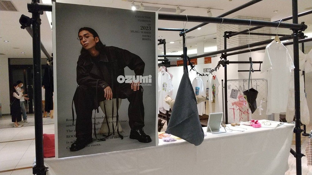 抜擢されたのは、ファッションデザインを学ぶ中岡直澄さん(2年生)と山本莉乃さん(3年生)。二人は、STAND MAGが運営するギャラリースペース「STAND MAG GALLERY」での展示実績がある上、展示が好評だったことから実現にいたりました。SDGsの12番「つくる責任、つかう責任」をテーマに、それぞれが手掛ける自身のブランドの展示のほか、同じZ世代の専門生が手掛ける3つのブランドをセレクト。洋服を作る上で出るゴミの量を減らすことを目標に、余った布などを使い、Z世代の次世代ファッションデザイナーたちが思うSDGsを発信しました。