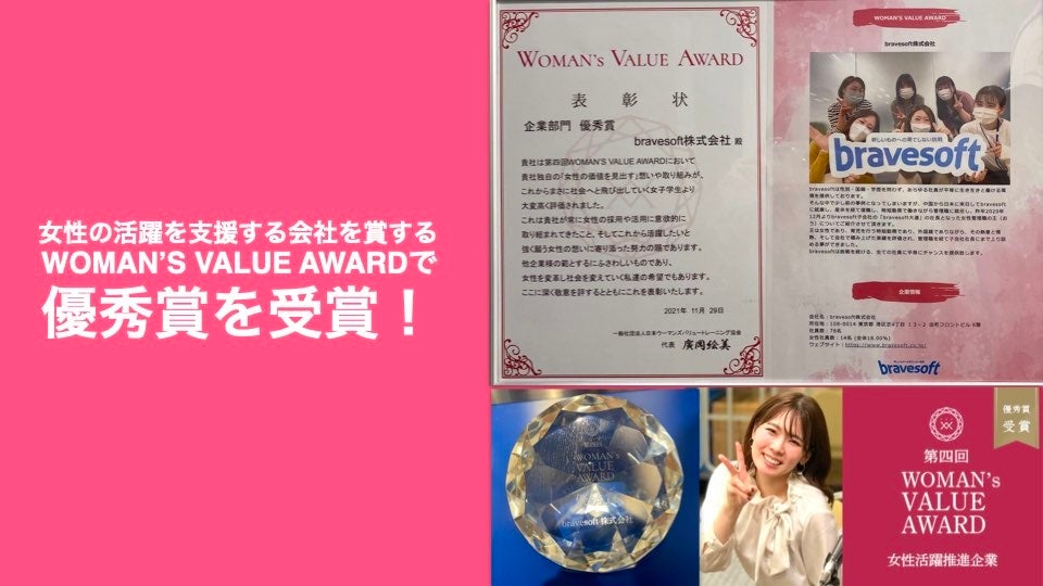 2021年には女性の活躍を評価する「WOMAN'S VALUE AWARD」で優秀賞を受賞した実績もございます。