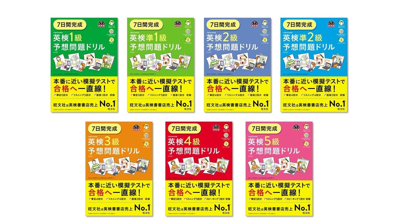 教育出版の株式会社旺文社(東京都新宿区、代表取締役社長 粂川 秀樹)は、「7日間完成 英検(R)予想問題ドリル」シリーズ(1級・準1級・2級・準2級・3級・4級・5級)を4月23日(火)に刊行いたしました。