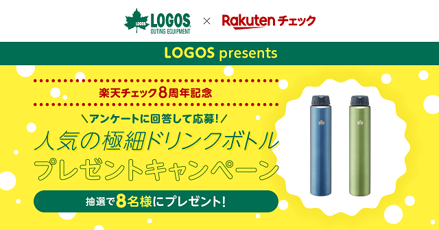 楽天チェック8周年記念キャンペーン第2弾 え!めっちゃ細い!「ロゴスの極細ドリンクボトルが当たるキャンペーン」を実施