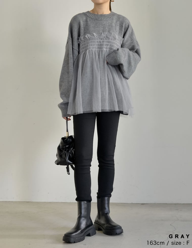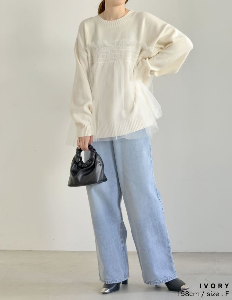 商品名:アルパカタッチチュールドッキングニットプルオーバー
