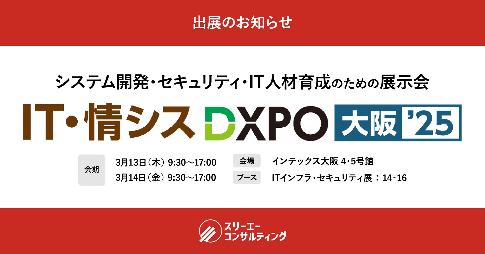 ISO・Pマーク⽀援実績数全国No.1(注1)のISO/Pマークの取得・運⽤⽀援サービス「認証パートナー」を提供する株式会社スリーエーコンサルティング(本社:大阪府大阪市、代表取締役社長:竹嶋 寛人)は、3/13(木)~3/14(金)にインテックス大阪で開催されるシステム開発・セキュリティ・IT人材育成のための展示会「第1回 IT・情シスDXPO 大阪'25」に出展いたします(注2)。「ITインフラ・セキュリティ展」にて、クラウド型ISO管理ツール『ISMSアシスト』『9001アシスト』『Pマークアシスト』をご紹介、ISO・Pマークのプロが実際にご担当者さまのお悩みをお伺いします。クラウド型ISO管理ツールは、累計8,000社以上のISO/Pマークの取得・運用支援を行っている弊社が、これまで蓄積してきたISO管理に対する多数の悩みをもとに開発したクラウド上でISOを運用できるツールです。文書作成、記録作成といった新規認証・運用で煩雑だった審査前の書類を一元管理できるため、書類の整理整頓やスケジュール管理が容易になり効率的な新規認証・運用を実現します。本出展を通じて、より多くの円滑なISO・Pマーク取得・運用をサポートすると共に、企業の業務効率化に貢献します。
